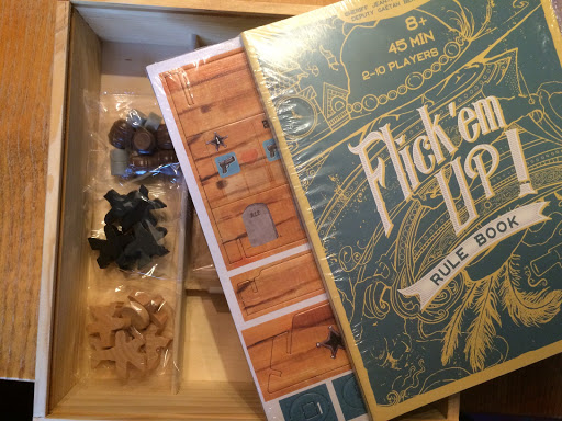 Here at “Boy Got Game,” we like to bring you a variety of games and there’s surely nothing like Flick ‘Em Up. Yes, there are dexterity games on the market, but none so beautifully conceived as Flick ‘Em Up. I’m not even going to hide how I feel about this game because it’s such a winner – the only question is really how well I’m going to rate it.