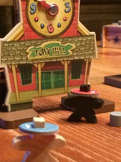 It’s the buildings that set the scene so brilliantly. Made from very durable thick cardboard, the buildings are colourful and cartoonish without being childish. Just like the box, they cleverly take you back to earlier years, of watching Westerns on TV. And the hands on the clock move – as a time marker. Each scenario tells you when the clock should start and when it should end (high noon) but when a game tells you that the time is up and you turn to each other and say, “No, let’s finish this,” that’s a real indicator of an excellent game.