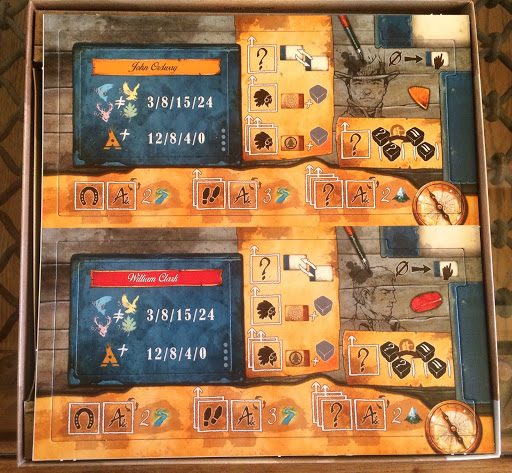 The aim of the game is to record three differing kinds of data in your Journal – geographical (by mapping territories), biological (by discovering new species) and ethnological (by encountering American Indian tribes). Are there many games that have the word “ethnological” in the rule book? I’m thinking not. In terms of game balance, it seems that biological records are where the winning points really lie, which is a shame in terms of game balance because one would have hoped these would all have been equally valuable.
